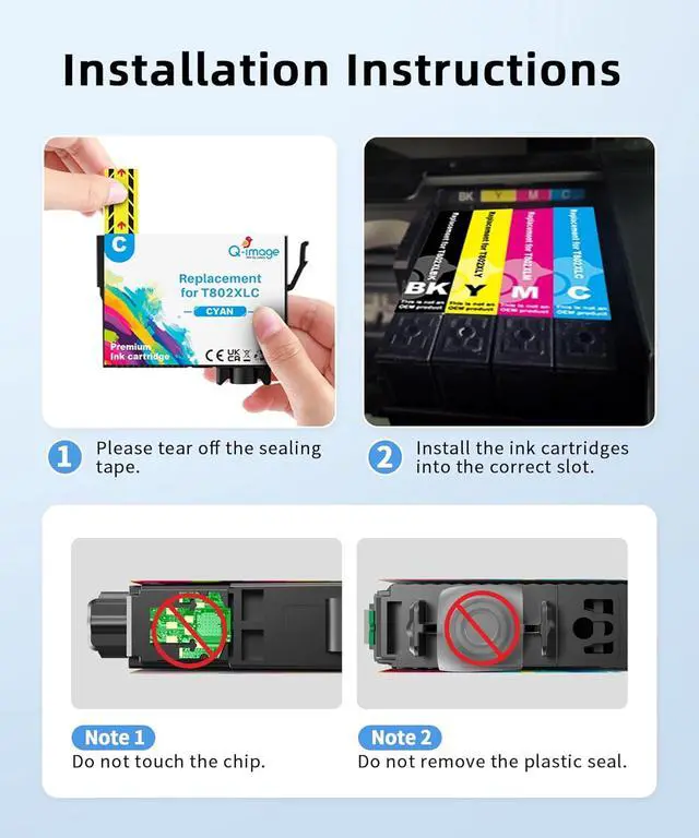 Compatibility with 802xl Ink Cartridges for epson Printer : Work with Pro WF-4720, WF-4730, WF-4734, WF-4740, EC-4020, EC-4030, EC-4040 replacement for 802xl ink cartridges combo pack