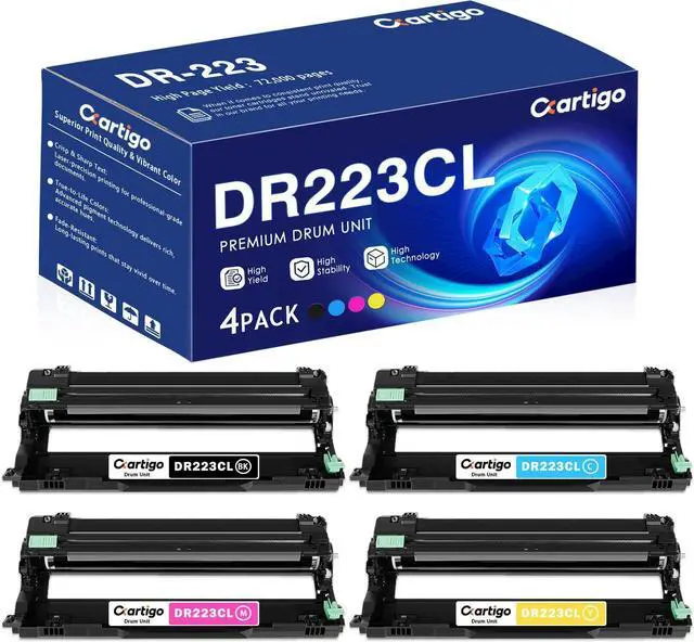 Package Contents: 4 Pack DR223CL High Yield Drum Unit Replacement for DR-223CL DR223 DR 223CL Drum Unit1Black 1Cyan 1Yellow 1Magenta, With Chip