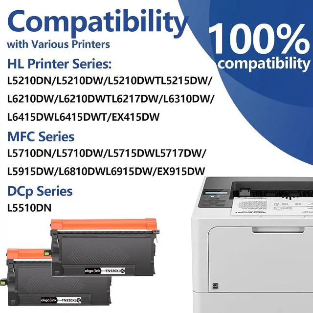 TN920XL Compatible for Printer: HL-L6210DW, HL-L5210DN, HL-L5210DW, HL-L5210DWT, HL-L5215DW, HL-L6415DW, HL-L6210DWT, HL-L6217DW, HL-L6310DW, HL-L6415DWT, HL-EX415DW, DCP-L5510DN, MFC-L5710DN, MFC-L5710DW, MFC-L5715DW, MFC-L5717DW, MFC-L5915DW, MFC-L6810DW, MFC-L6915DW, MFC-EX915DW ,Please confirm the printer.