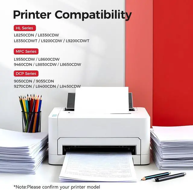 Perfect Compatibility: Compatible for Brother Printer: DCP-9050CDNDCP-9055CDN, DCP-9270CDNDCP-L8400CDNDCP-L8450CDW, HL-L8250CDNHL-L8350CDW, HL-L8350CDWTHL-L9200CDWHL-L9200CDWT, MFC-L9550CDWMFC-L8600CDW, MFC-9460CDNMFC-L8850CDWMFC-L8650CDW.