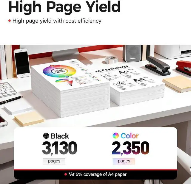 High-Yield Page Output: 067h Black prints up to 3,130 pages per black cartridge, and 067h color cartridges up to 2,350 pages each at 5% coverage, ideal for home office and small business use.