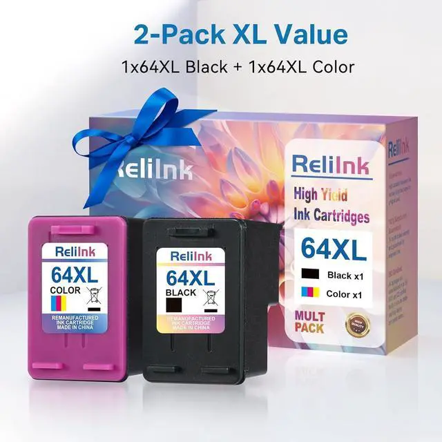 Premium Ink Formula: Sharp text and vivid, smudge-proof images for hp ink 64xl black and color combo pack xl. Filled with high-quality printer ink hp 64, these for hp envy photo 7855 7858 7155 ink cartridges produce crisp text and vivid images. ReliInk ink cartridges for hp printers 64 are perfect for everyday documents, creative projects and photographs. From business reports to family photo albums, enjoy professional-quality printing that lasts with these for hp envy inspire 7900e 7955e 7200e.
