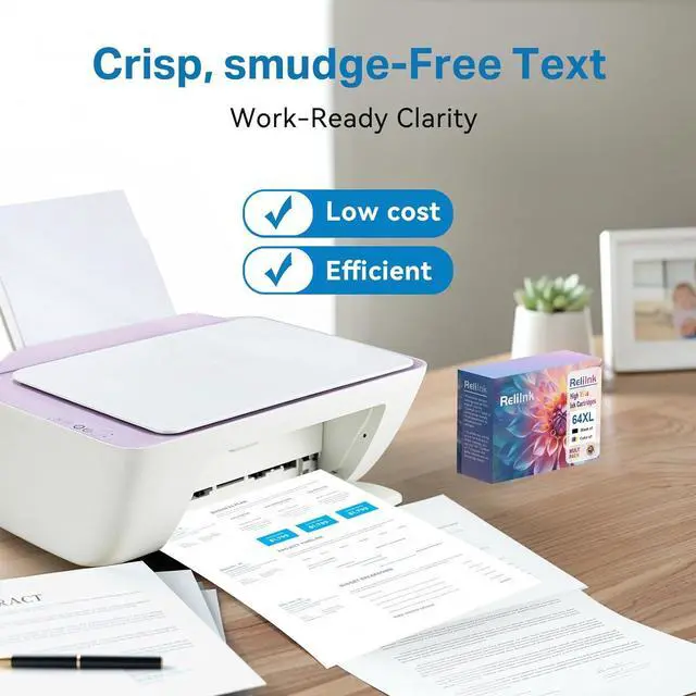 Smart Chip Technology: ReliInk 64xl black and color ink cartridge for hp printers replacement compatible hp64 ink with real-time ink level monitoring. Equipped with the latest smart chip, our for hp printer ink 64 compatible cartridges ensure seamless printer recognition and accurate ink tracking. Avoid last-minute print interruptions by knowing exactly when to replace these for hp64xlblack and color combo pack and keep hp printer running smoothly in busy offices, classrooms, or home workspaces.