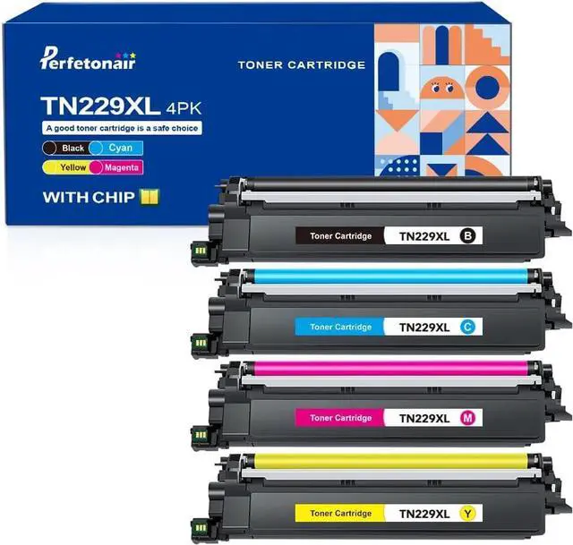 Package Contents: TN229XL toner cartridges replacement for Brother TN229 TN229XL toner (1 × TN229XL black, 1 × TN229XL cyan, 1 × TN229XL magenta, 1 × TN229XL toner cartridge)
