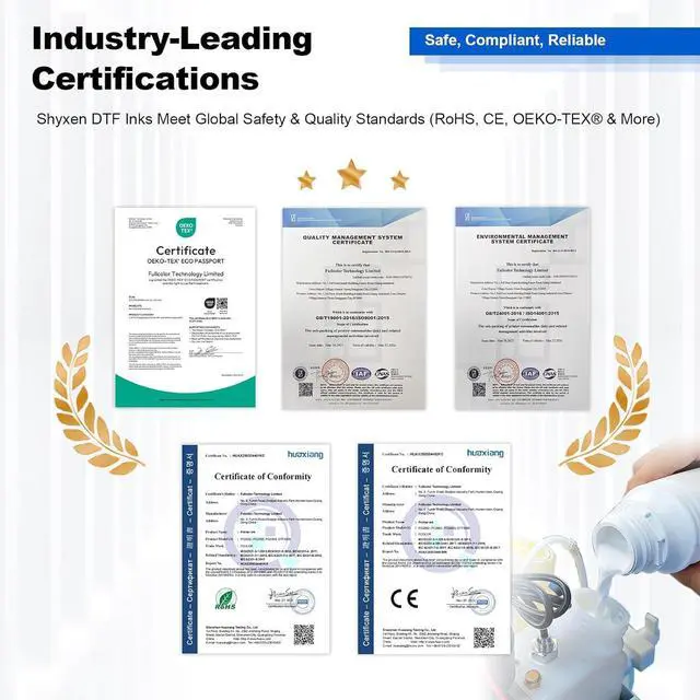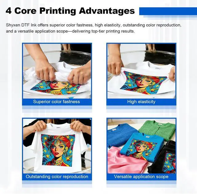 High Efficiency & Low Consumption SHYXEN DTF ink delivers stable, high-speed printing with low ink use, perfect for high-volume custom T-shirts and commercial DTF projects.