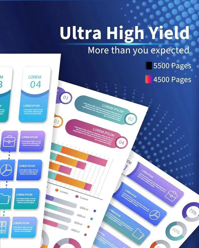 High Page Yield: Print up to 5,500 pages per TN-635XLBK black toner cartridges, 4,500 pages per TN-635XLC TN-635XLM TN-635XLY toner cartridges (based on A4 paper with 5% coverage)