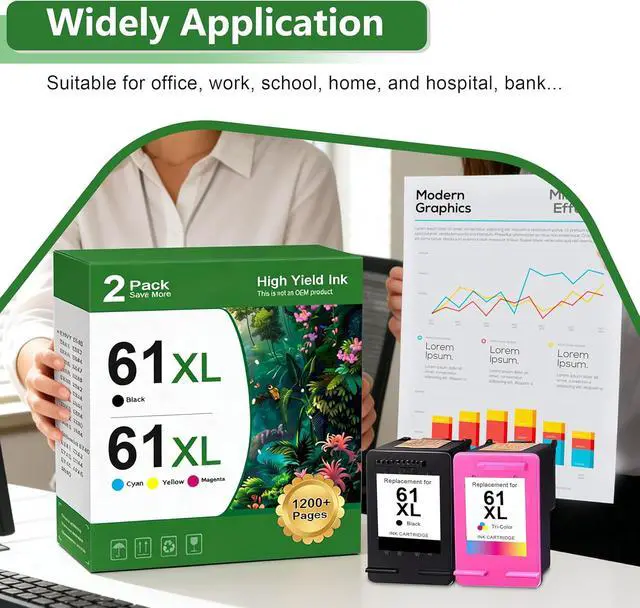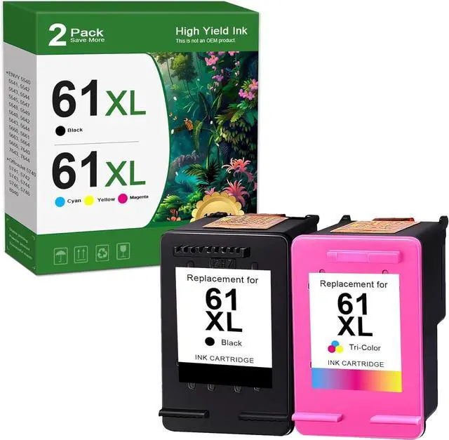 Package Content: 2 pack 61xl ink cartridge high yield replacement for hp 61 61xl ink cartridges combo pack (1 Black, 1 Tri-Color)