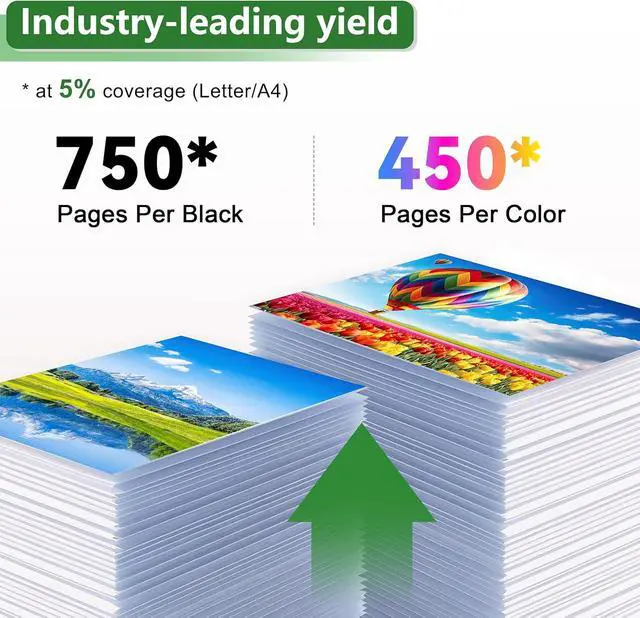 Page Yield Advantage: Up to 750 pages per Black 61XL ink cartridge, 450 Pages per 61XL 61XL colour cartridge (Letter/A4, at 5% coverage)