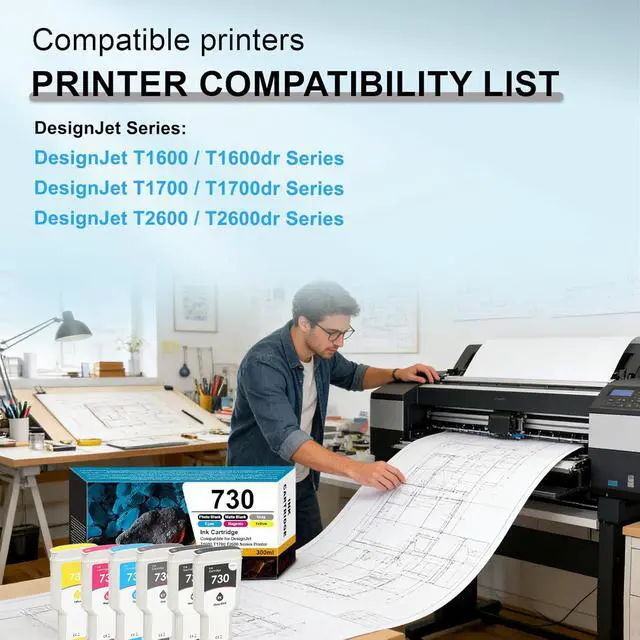 Multiple quality inspection: 730 ink cartridge has been rigorously tested many times to ensure excellent quality. Toner can present clear text and vivid images without any stripes, spots or defects, which is very suitable for technical drawing, photos, posters