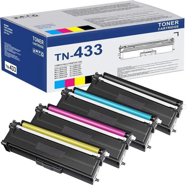 Package Contents: TN433BK TN433C TN433M TN433Y Toner Cartridges One each (Total: 4 Pack)