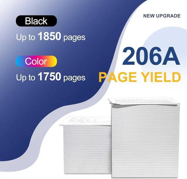 Page Yield: Up to 1,850 pages for 206A Black toner cartridge and 1,750 pages for 206A Cyan/Magenta/Yellow toner cartridges (Letter/A4, at 5% Coverage)