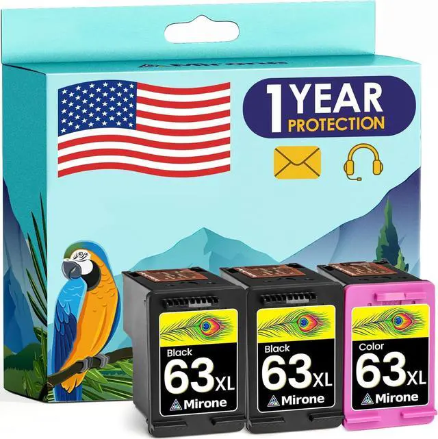 Contents. 3 remanufactured cartridges for HP 63 Ink (2 black, 1 color).