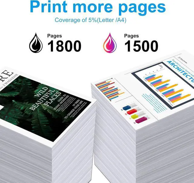 High Page Yield(High Capacity): Yields Up to 1,800 pages per Black & 1,500 pages per Color cartridges at 5% coverage (Letter/A4)