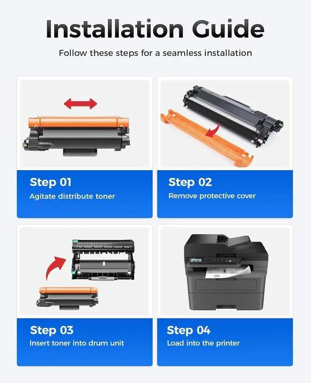 Compatible Printer: Compatible with Brother HL-L2400D HL-L2405W HL-L2420DW HL-L2460DW HL-L2465DW HL-L2467DW HL-L2480DW HL-L2865DW HL-L2460DWXL MFC-L2760DW MFC-L2807DW MFC-L2820DW MFC-L2820DWXL MFC-L2900DW MFC-L2900DWXL MFC-L2980DW DCP-L2640DW DCP-L2647DW Series Printer.
