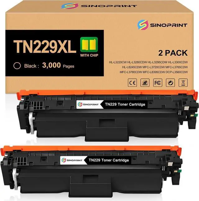 With Chip: SINOPRINT TN229XL TN229 TN-229XLBK toner cartridge uses the latest upgraded chip ensures the high compatibility.