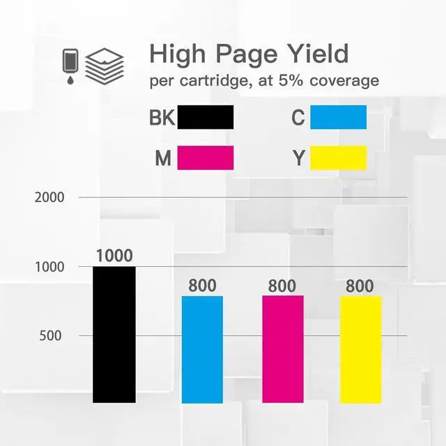 Page Yield of 923XL Ink Cartridges: Up to 1000 pages per black ink cartridge, up to 800 pages per color ink cartridge (at 5% coverage of A4 paper)