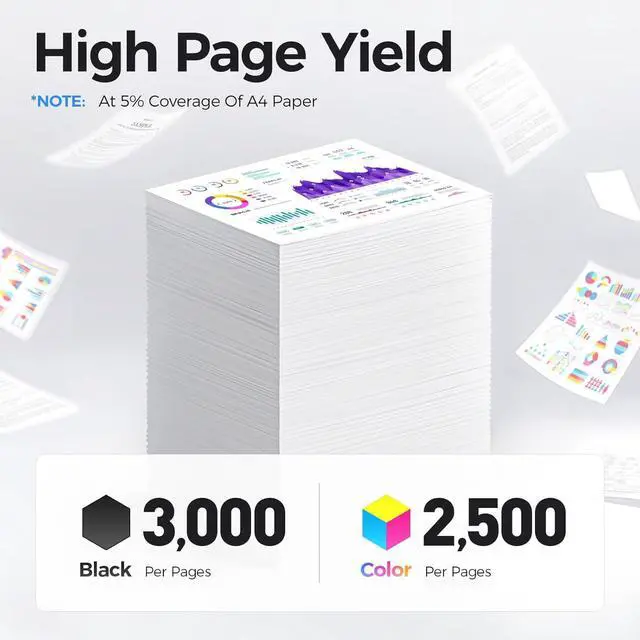 High-Yield: up to 3,000 pages per C230 C235 Black and pages per 2,500 Color toner cartridge (Total 10,500 pages, 5% coverage).