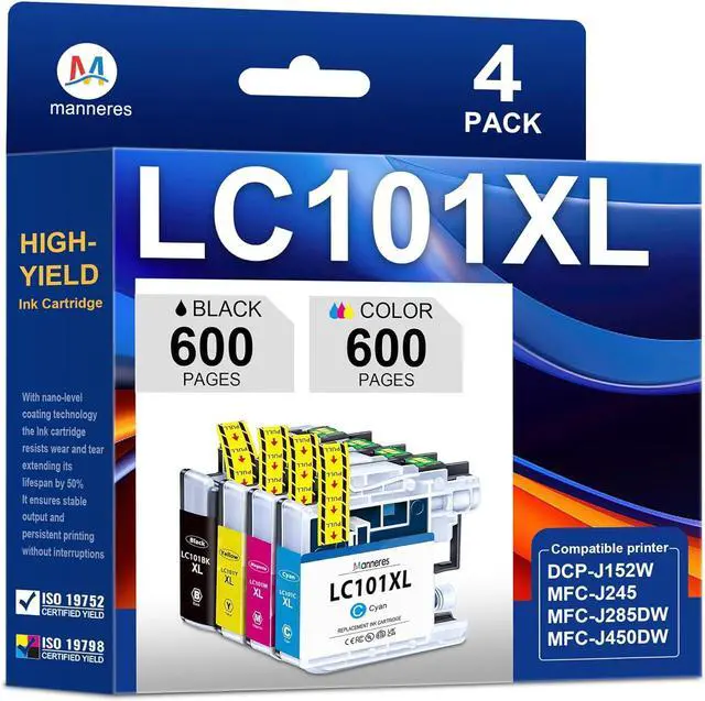 Package contents: 4 Pack-LC101XL(1Black+1Cyan+1Magenta+1Yellow) Ink Cartridges