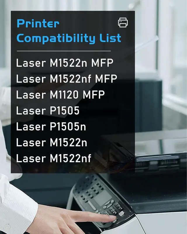 Printer Compatibility: Compatible with the 36A black toner cartridge (CB436A) for use with Laser M1522n MFP M1523nf MFP M1120 MFP P1505 P150n Printer