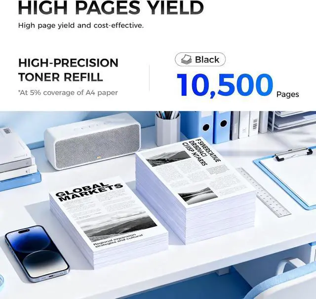 High Page Yield: Yields up to 10,500 pages per black (Based on 5% coverage rate). Replacement for HP 147A/W1470A 147X/W1470X Toner cartridge.