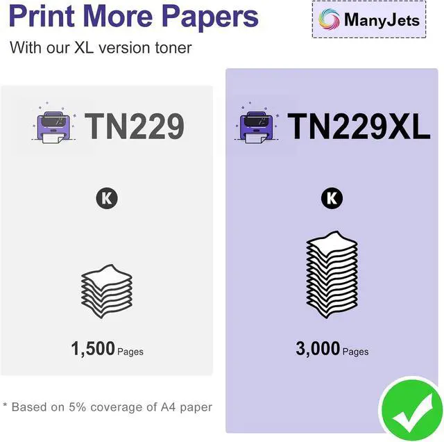 WIDE RANGE Of USES:The TN229XL high yield toner cartridges replacement are perfect for contracts, invoices, school handouts, and professional reports. Can be used by a wide range of home users, schools, small businesses and large offices