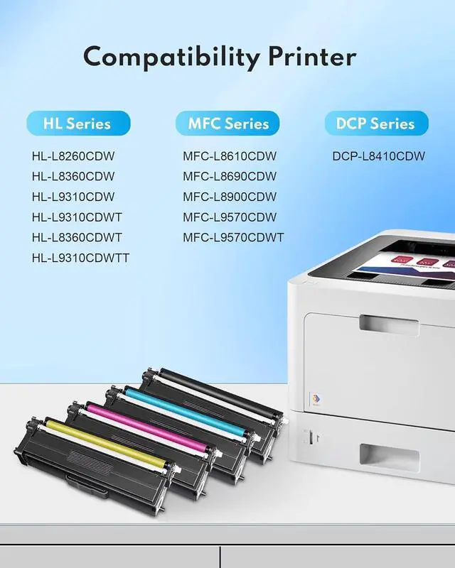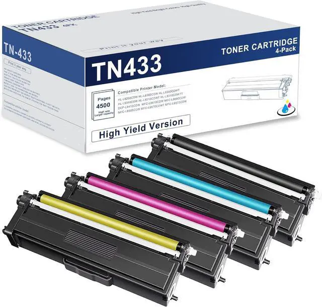 Compatible Printer: TN 433 toner cartridges compatible for Brother HL-L8260CDW HL-L8360CDW HL-L8360CDWT HL-L9310CDW HL-L9310CDWT HL-L9310CDWTT MFC-L8610CDW MFC-L8690CDW MFC-L8900CDW MFC-L9570CDWT MFC-L9570CDW DCP-L8410CDW Printer.
