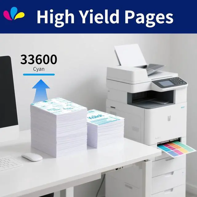 High Page YieldUp to 33,600 pages for the Cyan toner, measured at 5% coverage (Letter/A4).