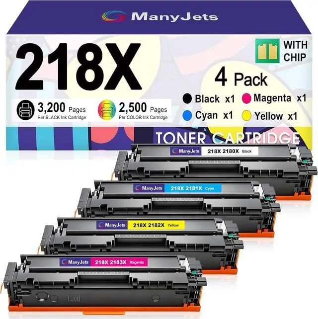What Will You Get: 218X toner cartridges 4 pack with Chip compatible for HP 218X High Yield 218A toner cartridges; Also for standard hp 218a toner cartridges 4 pack. Included 1 pack 218X w2180X black toner cartridge, 1 pack 218X w2181X cyan toner cartridge, 1 pack 218X w2182X yellow toner cartridge, 1 pack 218X w2183X magenta toner cartridge