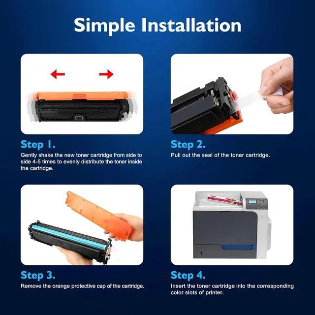 Premium Quality: Each CE260A CE261A CE262A CE263A Toner Cartridge undergoes a strict quality testing procedure to ensure reliable, vibrant printouts and perfect compatibility with your printer. No leaking, no fading, no smudging, no streaks. High quality guaranteed.