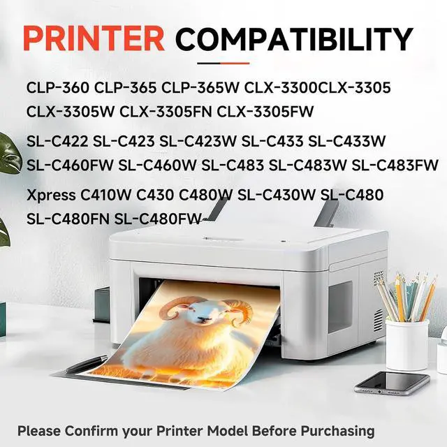 Compatible Printers: CLP-360 CLP-365 CLP-365W CLX-3300CLX-3305 CLX-3305W CLX-3305FN CLX-3305FW SL-C422 SL-C423 SL-C423W SL-C433 SL-C433W SL-C460FW SL-C460W SL-C483 SL-C483W SL-C483FW Xpress C410W C430 C480W SL-C430W SL-C480 SL-C480FN SL-C480FW Printers