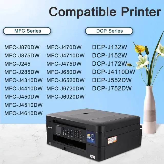 100% Compatible Printer: with intelligent chips, Recognition for Brother MFC-J870DW MFC-J875DW MFC-J245 MFC-J285DW MFC-J4310DW MFC-J4410DW MFC-J450DW MFC-J4510DW MFC-J4610DW MFC-J470DW MFC-J4710DW MFC-J475DW MFC-J650DW MFC-J6520DW MFC-J6720DW MFC-J6920DW DCP-J132W DCP-J152W DCP-J172W DCP-J4110DW DCP-J552DW DCP-J752DW Printer