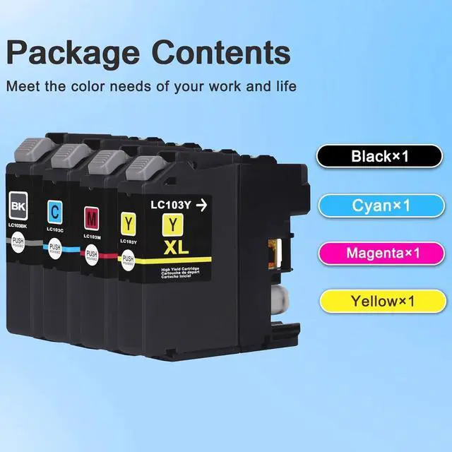 Upgrade of smart chips: The upgraded LC103 bk/c/m/y ink cartridges perfectly achieved 100% compatibility, performance, print quality and higher page yield