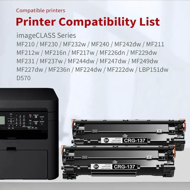 Compatible Printers: ImageCLASS MF210 MF230 MF232w MF240 MF242dw D570 LBP151dw MF211 MF212w MF216n MF217w MF226dn MF229dw MF231 MF237w MF244dw MF247dw MF249dw MF227dw MF236n MF224dw MF222dw Printer