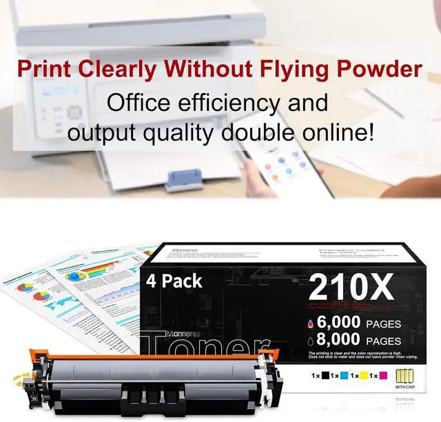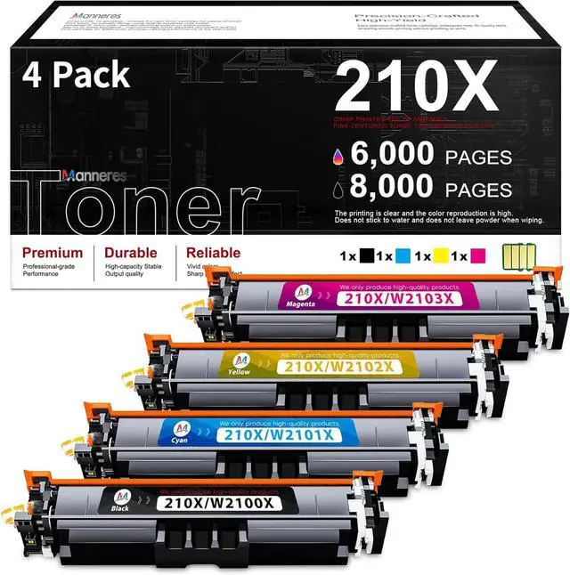 Package contents:1x 210X W2100X black toner, 1x 210X W2101X cyan toner, 1x 210X W2102X yellow toner, 1x 210X W2103X magenta toner (Each toner cartridge is pre-installed with an advanced chip and comes with a detailed installation guide)