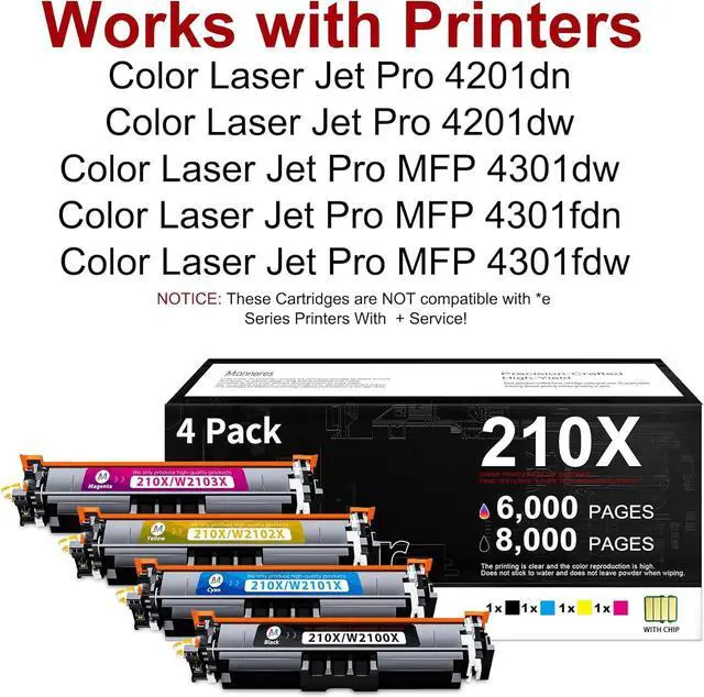 Universal Compatibility: Color Laser Jet Pro 4201dn, 4201dne, 4201dw, 4201dwe; Color Laser Jet Pro MFP 4301dw, 4301dwe, 4301fdn, 4301fdne, 4301fdw, 4301fdwe Printers