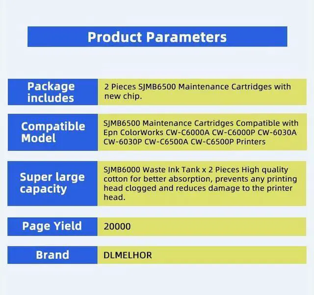 Compatible Model: SJMB6500 Maintenance Cartridges Compatible with Epn ColorWorks CW-C6000A CW-C6000P CW-6030A CW-6030P CW-C6500A CW-C6500P Printers