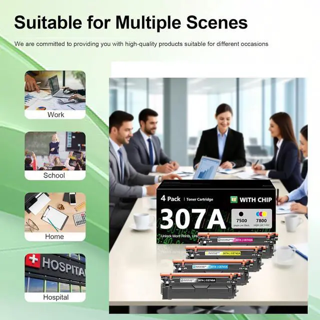 Reliable High-Quality Printing: Our 307A high yield toner cartridges deliver consistent, sharp text and vibrant color output, helping you maintain smooth printing without interruptions