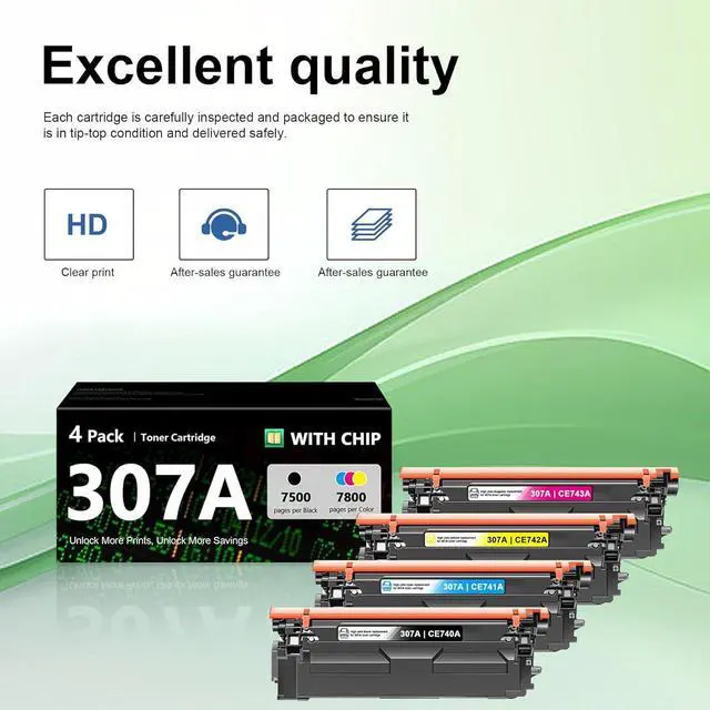 Printer Protection: These 307A toner cartridges 4 pack feature tamper-resistant chips to help safeguard your printer