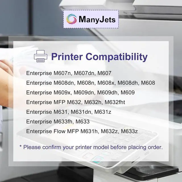 [Compatible Printer Models]: The 37Y CF237Y Toner Cartridge compatible for HP Enterprise M607n/M607dn/ M607/ M608dn/ M608n/ M608x/ M608dh/ M608/ M609x/ M609dn/ M609dh/ M609; Enterprise MFP M632/ M632h/ M632fht/M631/ M631dn/ M631z/ M633fh/ M633; Enterprise Flow MFP M631h/ M632z/ M633z printer Warm Tips: Please confirm your printer model before placing order