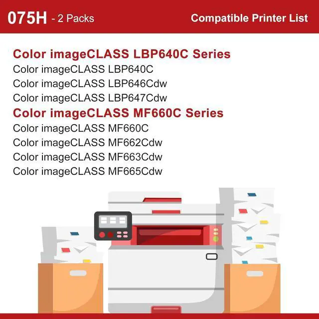 Printer Compatibility: toinkbea 075H Black Toner Cartridge replacement for canon 075H black toner cartridge, designed to work seamlessly with Canon imageCLASS LBP640 LBP640C LBP646Cdw LBP647Cdw MF660 MF660C MF662Cdw MF663Cdw MF665Cdw Series Printer.