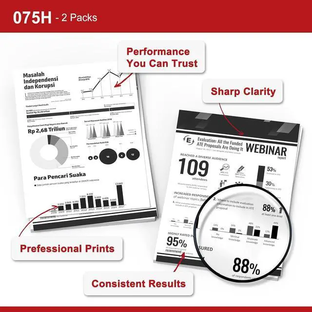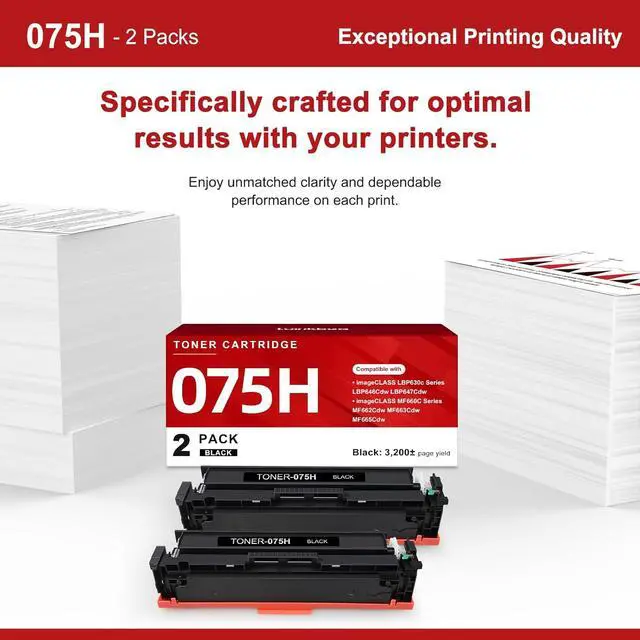 Excellent Performance: The 075H Black toner cartridges are manufactured with strict adherence to high-quality standards and processes, ensuring reliable printing, full compatibility with Canon printers, and high-quality printouts.