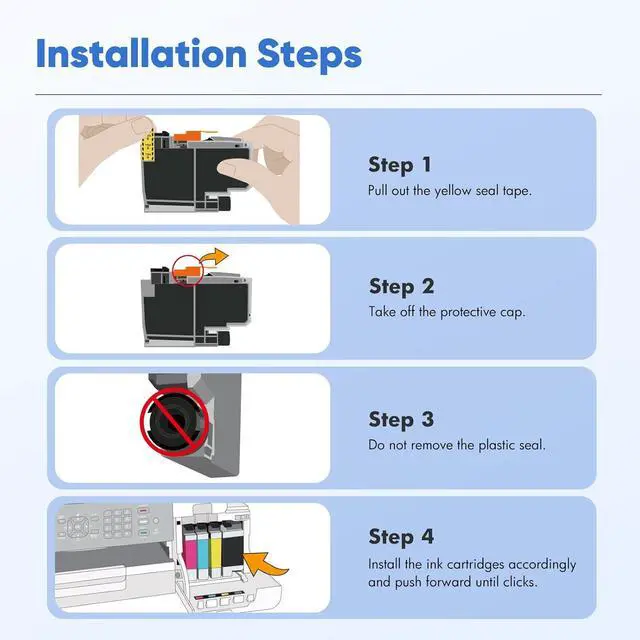 Package Includes4 Pack LC406XL LC406-XL Ink Cartridge Replacement for Brother LC406XL (Black Cyan Yellow Magenta)