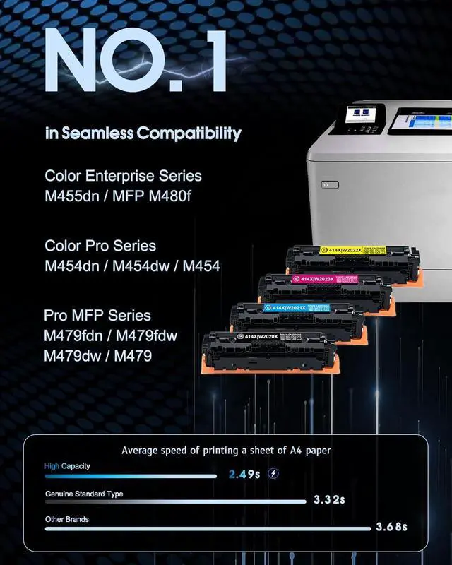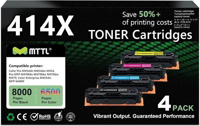 Page Yield: 8,000 pages for black 414X toner and 6,500 pages for per color 414X toner cartridge at 5% coverage (Letter/A4)