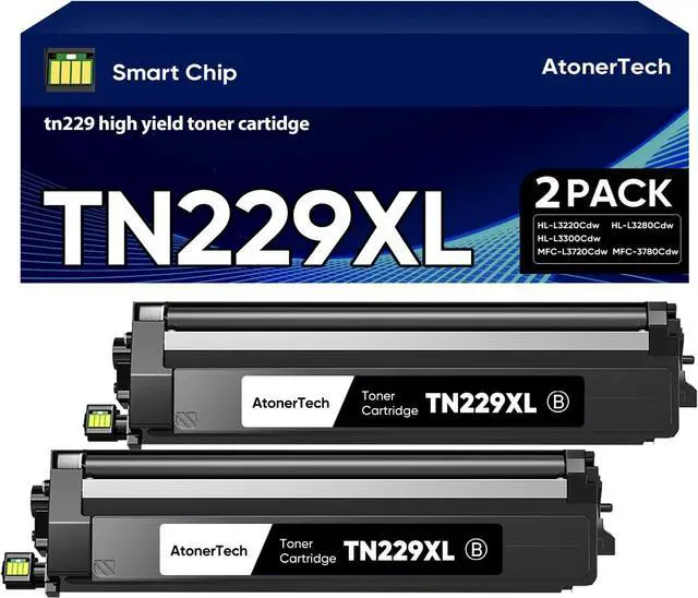 Wide Compatibility:AtonerTech 2 Black TN229 TN229XL toner cartridge compatible Replacement with MFC-L3780CDW, HL-L3280CDW, HL-L3220CDW, MFC-L3720CDW, and HL-L3295CDW.