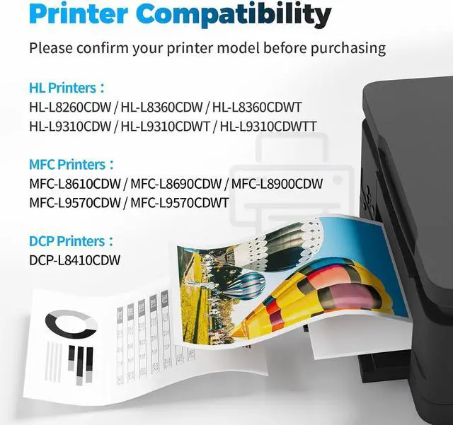 Printer Compatibility: Compatible with MFC L8610CDW MFC L8690CDW MFC L8900CDW MFC L9570CDW MFC L9570CDWT HL L8360CDW HL L8360CDWT HL L8260CDW HL L9310CDW HL L9310CDWT HL L9310CDWTT DCP L8410CDW Printer