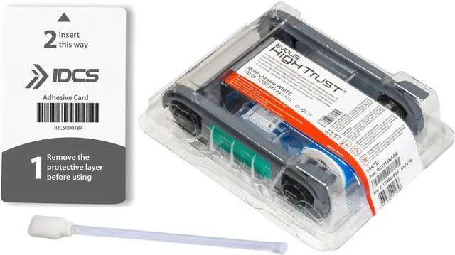 - Evolis 2 Printer, Printing Pack 1 Monochrome White Ribbon, and Express IDCS Cleaning Kit ( 1 Swab + Cleaning Card ) - White Ribbon 1000 Images - For Primacy 2, Primacy 2 Evolution, Primacy 2 Pro Edition, Zenius - Pack Express Kit, 1 Swab, and 1 Cleaning