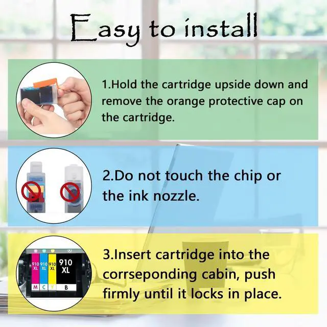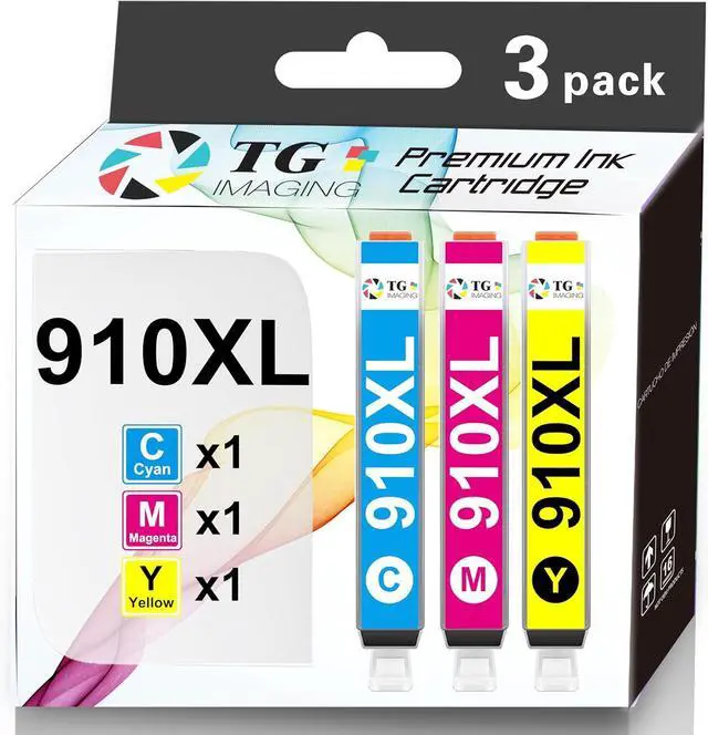 Note: TG Imaging Ink 910XL cartridges ARE NOT COMPATIBLE with *e series printers Package Includes: 910XL Cyan, 910XL Magenta, 910XL Yellow (3-Pack)