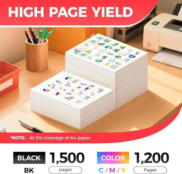 High-Yield: up to 1,500 pages per 054 CRG054 Black and 1,200 pages per 054 CRG054 Color toner cartridges (Total 5,100 pages, 5% coverage)