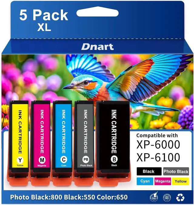 Updated Smart Chip for 302XL Ink: Equipped with latest version smart chip, ensures full compatibility with Epson 302, XP-6000, XP-6100 printers. Delivers crisp, smudge-free text & vivid, true-to-life colors, ensuring professional-grade printing results every time