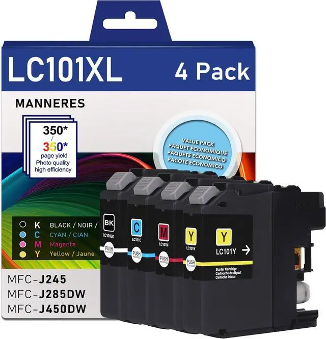 What's in the box: LC101XL Ink Cartridge Set 4 Pack includes 1 x LC101XL(1VV24AN)140ml Black ink,1 x LC101XL Cyan ink,1 x LC101XL Magenta ink,1 x LC101XL Yellow ink